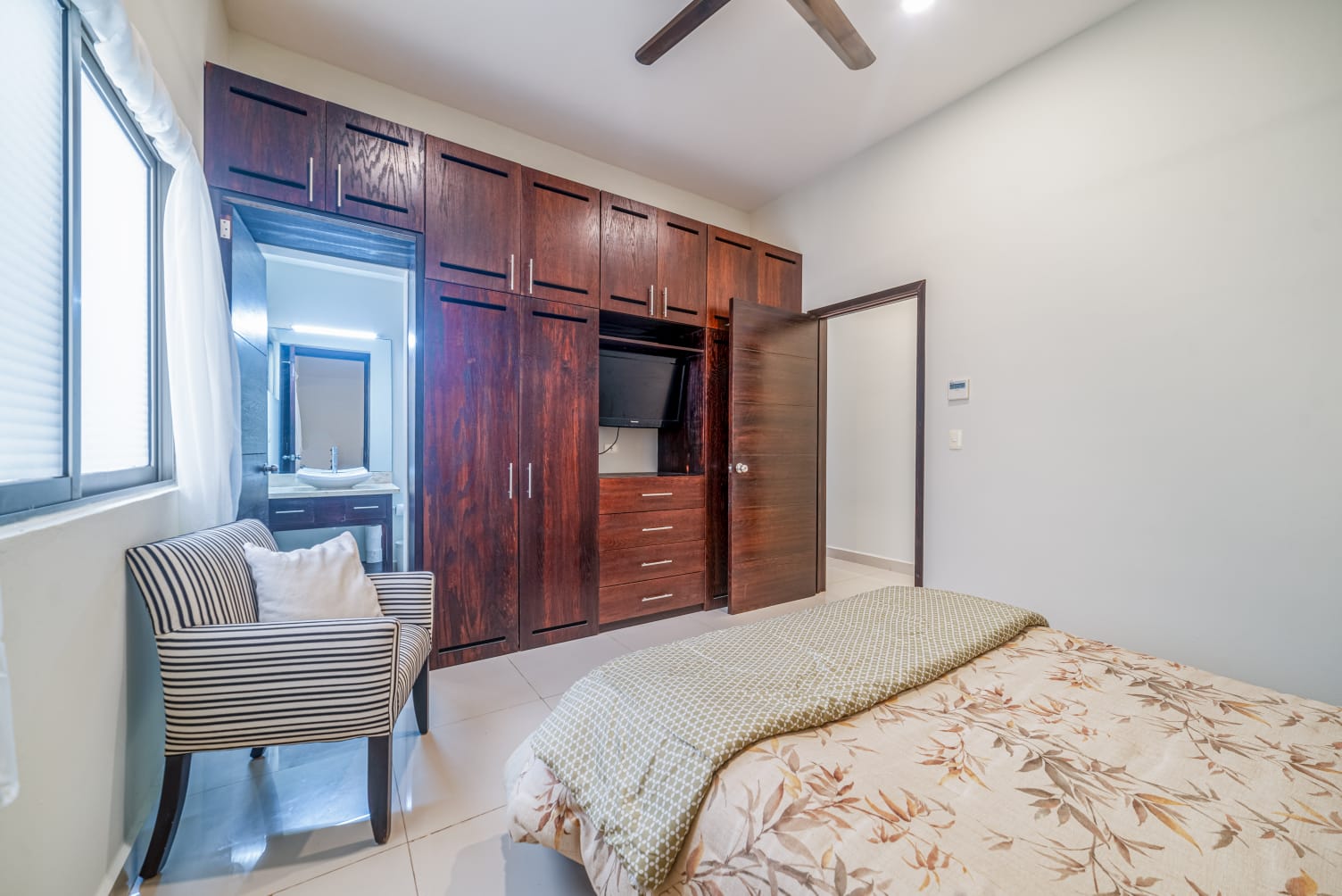 Only a few minutes away walking or bicycling, you will find the Comercial Area of Puerto Aventuras with many restaurants, boutiques, water sport activities, a 9 hole golf course, 2 marinas, beach club, pharmacies, ATM machines, Central Park with Pickle Ball, a school and small super markets. The development offers 24/7 gated security and controlled access.
