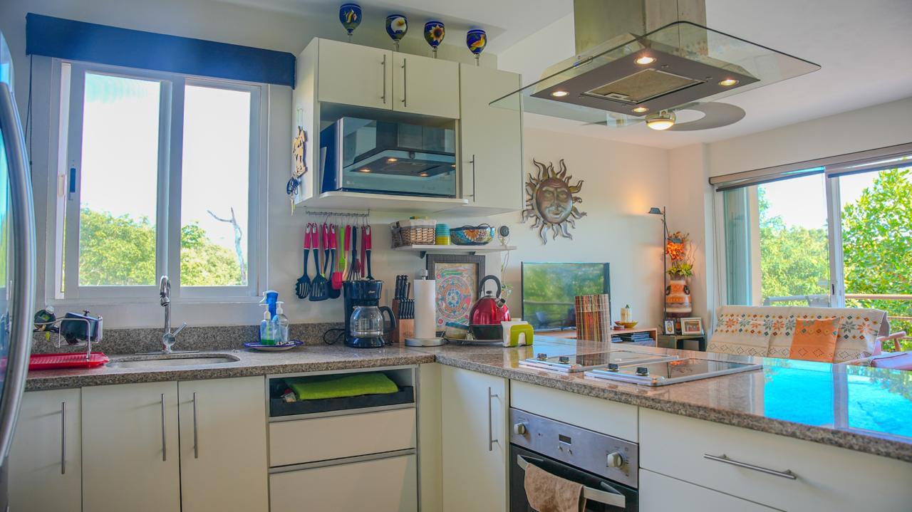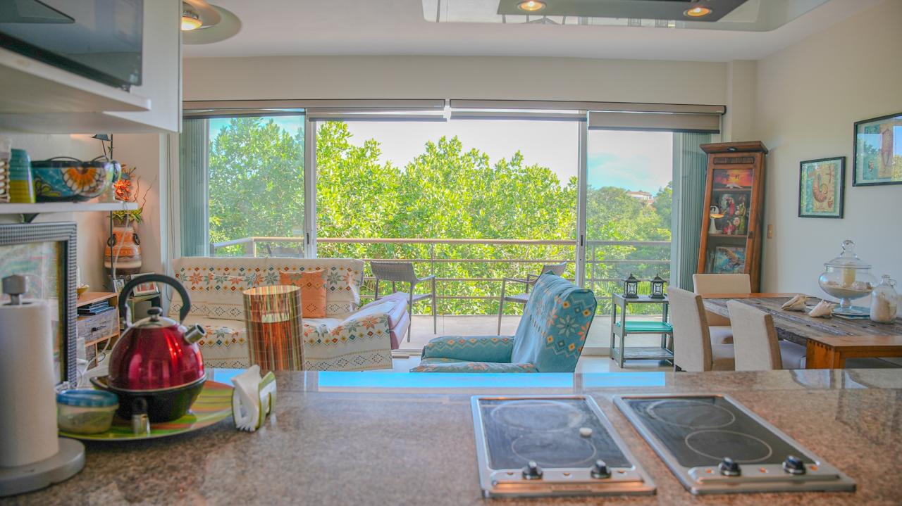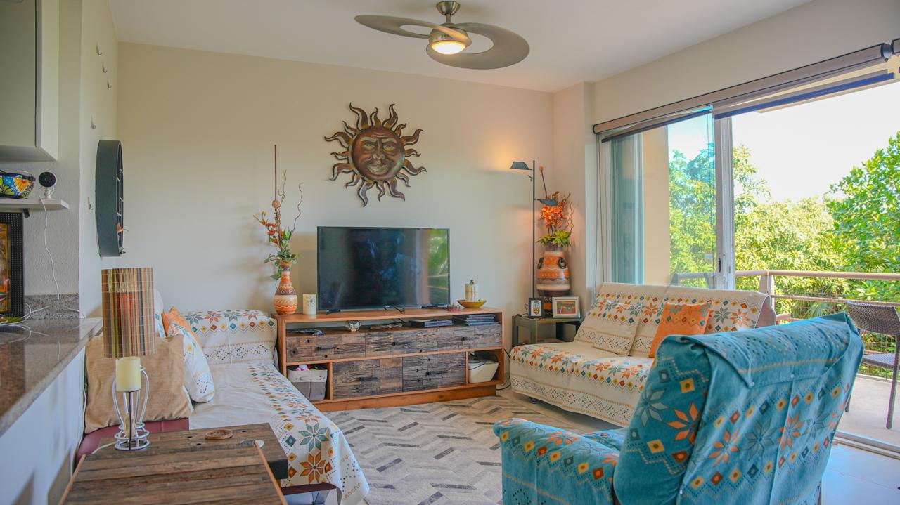 Disfruta de un estilo de vida tipo resort en este hermoso condominio completamente amueblado de 2 recámaras y 2 baños, ubicado en el tercer nivel de un exclusivo edificio de solo 8 unidades, dentro de la comunidad privada y segura de Puerto Aventuras.