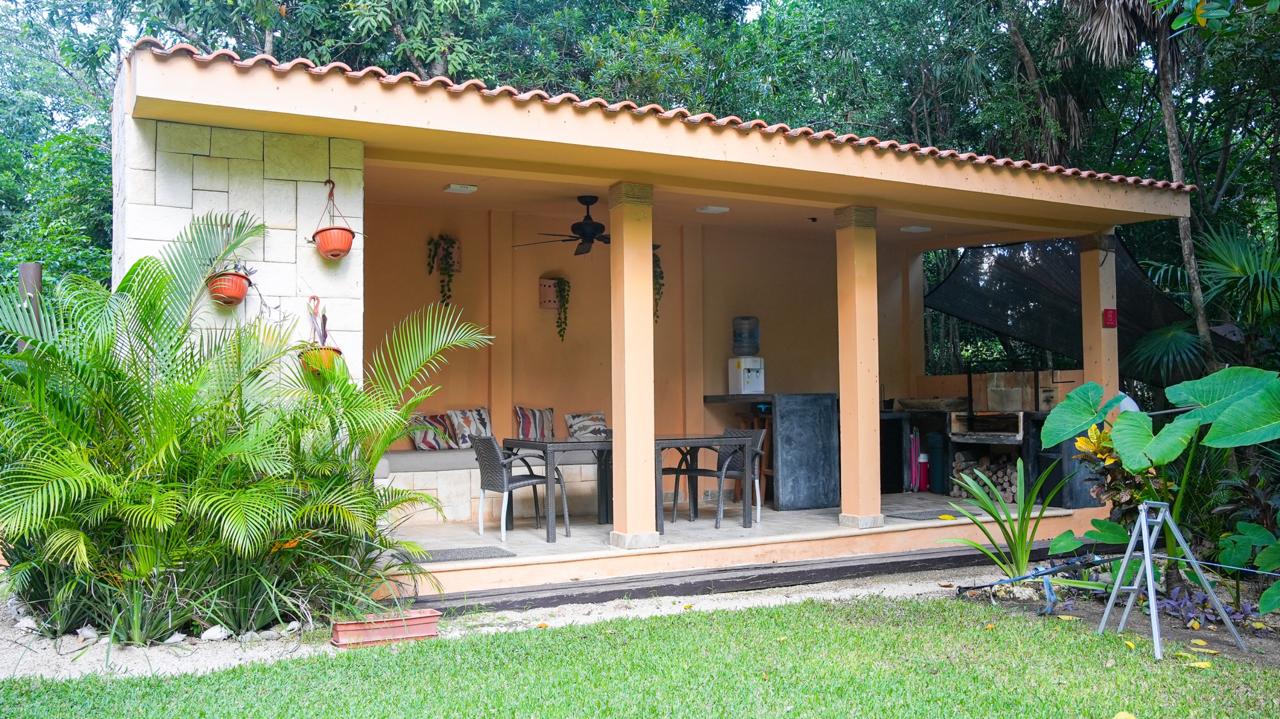 • Alberca, área de descanso y cocina exterior con asador